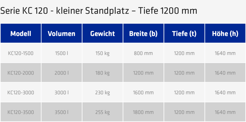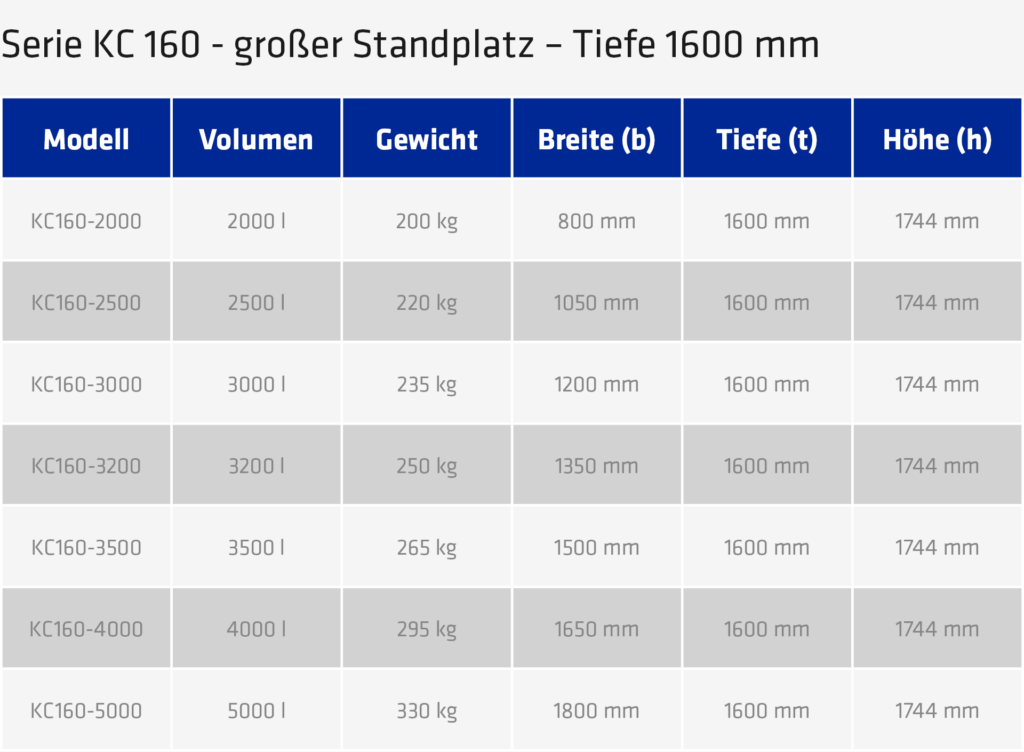 Fassungsgrößen: z. B. 1500 – 5000 l – je nach Einsatzzweck und Sammelvolumen.